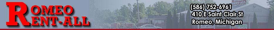 Whether you're starting a project around the house or your a professional contractor, Romeo Rent-All has the right equipment for your needs. Our quality equipment is dependable and our knowledgeable staff can help you pick the right equipment for your project. Call us today at (586) 752-6961!